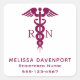 Eingetragene Krankenschwestern-Aufkleber personalisiert mit Ihrer Information. Mit einem roten Kadukus-Symbol mit den Buchstaben R N auf beiden Seiten. Das einfache minimalistische Design.