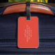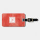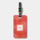Ein schlichtes, subtiler Marmorgepäckanhänger in orangefarbenem Rot mit einem modernen Abzeichen aus weißem Marmor, das Sie personalisieren können, indem Sie Ihre mit Monogramm Anfangs- und Kontaktinformationen hinzufügen. Dies ist Teil der Cherry Tomato Red Subtle Marmor Monogram Collection.