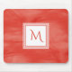 Ein schlichtes Marmormousepad in orangefarbenem Marmor mit einem modernen, weißen quadratischen Abzeichen, das Sie durch das Hinzufügen eines mit Monogramm Anfangs personalisieren können. Dies ist Teil der Cherry Tomato Red Subtle Marmor Monogram Collection.