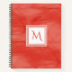 Ein einfaches, dezent in Marmor gehaltenes Standard-Notebook in orangefarbenem Rot mit einem modernen, weißen quadratischen Abzeichen, das Sie durch das Hinzufügen eines mit Monogramm Initialen personalisieren können. Dies ist Teil der Cherry Tomato Red Subtle Marmor Monogram Collection.