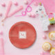 Einfache Rote Orange Subtile Marmor Modernes Monog Pappteller