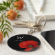 Einfache rote Poppe auf Schwarz mit Monogramm Schlüsselanhänger