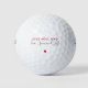 Personalisierter Text und Namen, einfacher Golfball mit modernem Rot und Schwarz Typografie und Handschrift Unterschrift und ein kleines rotes Herz.