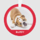 Einfache Red Dog Foto Name Holidays Keepake Ornament. Einfaches rotes Design mit einem Foto in einem runden Rahmen. Fügen Sie Ihren Namen und Foto hinzu und machen Sie einen süßen Weihnachtskuchen.