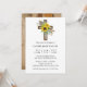 Einfache rustikale Sonnenblume Holzkreuz Taufe Einladung