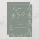 Mit unserer minimalistischen und trendigen Hochzeit Speichern Sie die Date-Karte, mit einer ruhigen Saga grüne Farbe mit einem einfachen, aber eleganten Blumendesign. Die zarte weiße Kalligraphie verleiht diesem Meer von Grüntönen Save the Date eine Touch von Eleganz und ist somit die ideale Wahl für eine moderne Hochzeitsfeier. Das romantische und minimalistische Design präsentiert ein hübsches und elegantes Typografie-Set vor einem grünen Hintergrund und schafft ein gepflegtes und stilvolles Ambiente für Ihren besonderen Tag.