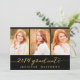 Moderne, moderne Fotokarte, die Ihre Familie und Freunde zur Abschlussfeier Ihrer Tochter einlädt. Einfache Sammlung| Einladung zur Graduierung für 2014. Design von Elke Clarke © Besuchen Sie unseren Shop www.zazzle.com/monogramgallery* für weitere Designs und Stile. Fügen Sie Ihr eigenes Foto und Text hinzu. Ein einfaches Schriftart-Texteüberlagern aus Goldfolie mit handgeschriebenen Schriftzeichen (gedruckter Foto-Effekt) mit den Worten "2014 Graduate" mit einem 3-Foto-Collage-Design.Ersetzen Sie Beispielprogramm durch eigenes Foto. Schwarz und Gold. Andere Stile und Farben verfügbar.