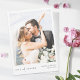Dieses schlichte Hochzeitsgeschenk-Foto ist mit einem eleganten, minimalistischen und modernen Design ausgestattet. Die Vorderseite zeigt Ihre Vornamen und das Datum unter Ihrem bevorzugten Foto und eine "LIEBE und DANKS" Nachricht in schwarz vermittelt mit einer auffälligen Mischung von zwei verschiedenen Schriftart, mit "und" in einem leichten, fließenden Drehbuch zwischen den beiden anderen Wörtern, die im oberen Fall mit einem kühnen, knusprigen formalen Aussehen sind. Der Teil "LIEBE und DANKS" des Designs ist schwarz und kann nicht verändert werden. Wenn Sie die Vorderseite bearbeiten, um Ihre eigenen Namen und das Datum anzuzeigen, können Sie die Farbe des Textes auf eine bestimmte Farbe oder etwas Anderes ändern, anstatt auf den Standard etwas gedämpftes Schwarz, je nach Ihrem Geschmack. Auf der Rückseite haben wir eine Hintergrundfarbe gewählt, die nicht ganz weiß ist, es ist ein sehr hellgraues, größtenteils weißes Rauchen. Sie können dies ändern, indem Sie eine andere Farbe in den Bearbeitungswerkzeugen auswählen, wenn Sie möchten. Oder Sie können den Hintergrund auf der Rückseite transparent machen, um die Farbe des Papiers lassen, indem Sie einfach als Grundton dienen. Die Standardfarbe des Textes auf der Rückseite ist das selbe leicht gemilderte Schwarz, das wir für die Namen und den Datumstext auf der Vorderseite verwendet haben, aber Sie können dies ändern, wenn Sie eine andere Farbe bevorzugen. Wir haben ein paar Beispieltexte auf die Rückseite gelegt, damit Sie Ihre eigene Nachricht nach Belieben ersetzen können, aber bitte fühlen Sie sich dadurch nicht eingeschränkt. Wenn Sie es vorziehen, unseren Beispieltext vollständig zu löschen und den Rücken völlig leer behalten, sodass Sie stattdessen eine handschriftliche Notiz auf jeder Karte schreiben können, können Sie das tun. Oder Sie wollte, unseren Text durch Ihre eigene Danksagung und Ihr eigenes Schließen zu ersetzen und dann Ihre Namen zu signieren, wenn Sie die Karten erhalten. Vergessen Sie in jedem Fall nicht, den gesamten Sample/Platzhalter-Text auf beiden Seiten sowie unser Foto zu entfernen! Wir haben Matte anstatt Halbglanz als Standardpapierwahl gewählt, da es gut geeignet ist, Ihre eigene Nachricht zu schreiben, und nicht verschmutzen wird. Sie können das natürlich in Halbglanz umändern, oder Sie sollten ein Upgrade auf etwas mit einer Textur wie Zazzle's 'Laid' oder 'Felt White' in Erwägung ziehen, was ein Gefühl von Wärme und Tiefe hinzufügen kann. Wir hoffen, dass Sie das Experimentieren mit verschiedenen Aspekten dieser stilvollen modernen Foto Hochzeit dank der Aussehen Ihrer Karte genießen und es einzigartig machen mit den intuitiven Design-Tools, Ihrem Foto und Ihrer Inspiration! Und bitte Karo unsere Hochzeitskarte für elegantere moderne Designs, einschließlich dieses Designs in einem horizontalen Format!