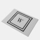 Einfach, klassisch oder modern und stilvoll. 2 schwarze Streifen, eine innere und äußere Grenze. Einfach mit Ihrem Nachnamen Initial oder Vollmonogramm in der Mitte personalisieren. Für 3 Initialen, passen Sie die Größe 72 des Textes an und wählen Sie sie aus, um sie zu verkleinern. Auf einem maskulinen grauen Hintergrund, oder anpassen und ändern Sie zu einem dunkelgrauen, weißen oder einer beliebigen Farbe. Benutzen Sie den Augenöffner, um mehr Farbwahl zu sehen. Passt nur das kleine Produkt an. Für sich selbst, oder macht ein nettes Geschenk für eine Hauswärmung, oder für eine Hochzeit oder Brautparty.