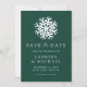 Mit unserem Simple Snowflake Green Save the Date verkünden Sie Ihre Winterhochzeit stilvoll. Mit einer fett weißen Schneeflocke und "Save the Date" in eleganten Serifen und Kalligrafien auf dunkelgrünem Hintergrund, zeichnet dieses Design die Schönheit des Winters aus. Personalisieren Sie mit Ihren Namen, Hochzeitstermin und Standort unten. Ideal für Winter-, Ferien- und Weihnachtsfeiern, dies Save the Date den Ton für eine zauberhafte Feier.