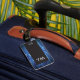 Eleganter, individualisierbarer Gepäckanhänger mit einem beruflichen Studio-Foto aus blauem Schaltbrett, schwarzem Streifen und Monogramm.