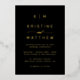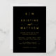 Diese einfache, aber elegante Goldfolie-Hochzeitseinladung beinhaltet moderne Kalligraphie-Skripte mit Monogramm auf schwarzem Hintergrund. Personalisieren Sie Ihre Hochzeitsdetails. Entworfen von Susan Coffey.