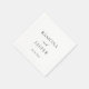 Elegante Hochzeitsnapkins mit einem einfachen und minimalen Design. Klassisches Layout mit großen Namen für eine moderne Drehung zu diesem traditionellen Stil. Dieses Schwarz-Weiß-Design kann auf jede Farbe geändert werden, die Sie im Designbearbeitungstool auswählen. Individuelle Servietten, die perfekt für eine feierliche Hochzeit sind.