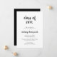 Minimalistische Abschluss-Ankündigungskarte mit einem einfachen und klassischen Design mit "Klasse des Jahres" und dem Namen des Absolventen in einer dicken schwarzen Schrift-Handschrift auf weißem Hintergrund. Die Rückseite ist schwarz. Eine traditionelle Ankündigungskarte mit einem modernen Flair für einen Absolventen.