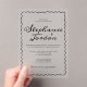 Fügen Sie Ihrem verspielten Hochzeitsstil eine moderne Drehung mit dieser Schwarz-Weiß-Akrylus-Hochzeitseinladung hinzu - eine kühne, kreative Idee für Ihre sonderbare Suite. Diese Einladung aus mattiertem oder Klarlack-Acryl zeigt einen handgezeichnet, welligen Rahmen und feinen, skurrilen Schriftart in schwarz für einen sauberen, kontrastreichen Look. Diese Acrylversion ist ein hervorragendes Stück in einer geschlossenen Suite, die alles andere als einfach ist. Sie ist perfekt für Paare, die einen ungewöhnlichen Charme mit modernem Design verbinden möchten.