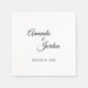 Diese einfache, schwarz-weiße Kalligraphie-Cocktailserviette verleiht einem minimalistischen und traditionelleren oder formellen Hochzeitsempfang oder Event eleganten Luxus, aber auch modernes Ambiente. Die lässige Kalligraphie ermöglicht ein antikes Ambiente, während das klassische neutrale Design mit jedem einzigartigen Aspekt Ihres Festes kombiniert werden kann.