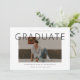 Dieses einfache, moderne Schwarz-Weiß-Abschluss verfügt über ein großes Foto. Alle Texte und Farben dieses Designs sind vollständig anpassbar. Ein kühner "Absolvent" sitzt auf dem Foto, während der minimale Typ das Design beendet. Auf der Rückseite dieses Designs befindet sich ein Informationsbereich oder Sie können ihn löschen. Sie können Variationen dieses Designs finden, zusammen mit anderen Graduierungsankündigungen, in meinem Zazzle-Shop.