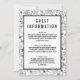 Eine Beilage für eine Hochzeit oder eine Veranstaltungseinladung für Gastinformationen. Das Design besteht aus einem einfachen Blumenrahmen in einer schwarz-weißen Farbpalette.