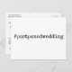 Einfache Schwarz-Weiß-Hashtag vertagte Hochzeit Postkarte