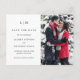 Einfaches Foto Save the Date Postkarte mit modernem und dennoch elegantem Design mit zwei Buchstaben Monogramm und Ihre Hochzeitsdetails in Schwarz auf weißem Hintergrund. Rechts ist Ihr bevorzugtes vertikales Foto. Die Schriftart können in beliebig viele Farben geändert werden. Fügen Sie Ihre Rücksendeadresse und Ihre persönliche Nachricht auf die Rückseite. Ein elegantes und stilvolles Design, das sich ideal für ein minimalistisches Paar eignet.