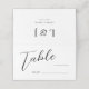 Eine minimale und einfache Tischnummer Platzkarte für Ihre Hochzeit, mit einem modernen Skript-Schriftart mit dem Wort "Tisch" und einer leeren Zeile, um die Tischnummer und den Namen des Gastes zu füllen. Personalisieren Sie die Rückseite der Karte mit den Namen der Braut und des Bräutigams und dem Hochzeitstag.