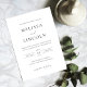 Eine einfache Schwarz-Weiß-Hochzeitseinladung mit Minimalistischem, dünnem Script und zeitloser Serifentypografie.