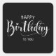 Einfache Schwarz & Weiß Moderne Script Happy Birthday Square Sticker