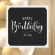 Einfache Schwarz & Weiß Moderne Skripte Happy Birt Quadratischer Aufkleber