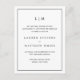 Einfache Hochzeitsankündigung Postkarte mit modernem und elegantem Design mit zwei Buchstaben Monogramm oben und Ihren Details umgeben von einem dünnen Rand. Der gesamte Text ist schwarz, über einen weißen Hintergrund und die Schriftart und Hintergrundfarben können durch Klicken auf die Schaltfläche "Anpassen" in alle gewünschten Farben geändert werden. Die Vorlage enthält traditionelle Formulierungen machen diese Ankündigung perfekt für eine formelle Hochzeit. Ein elegantes und stilvolles Design, das sich ideal für ein minimalistisches Paar eignet.