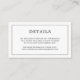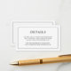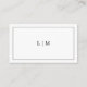 Einfache, kleine Hochzeitszimmerkarte mit modernem und elegantem Design, umgeben von einem dünnen Rahmen und einem Monogramm auf der Rückseite. Alle Designelemente sind schwarz über einem weißen Hintergrund und können im Entwurfsbearbeitungstool geändert werden. Ein elegantes und stilvolles Design, das sich ideal für ein minimalistisches Paar eignet. Benutzen Sie diese Umzäunungskarten, um Anweisungen und andere wichtige Informationen zu geben, die Ihre Gäste vielleicht wissen müssen, wie z.B. Hotelunterkünfte, Parkplätze, Shuttleservice, etc.
