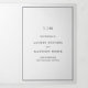 Einfach und in einer Hochzeitseinladung mit rsvp-Karte und Gehäuse-Karte angefügt, macht diese Einladungs-Suite bequem und günstig. Die Hochzeitseinladung besticht durch ein modernes und dennoch elegantes Design mit Ihrem zweistelligen Monogramm oben und Ihren Details inmitten einer dünnen Grenze. Alle Texte sind schwarz, über einen weißen Hintergrund, und Text und Rahmen können in eine beliebige Farbe geändert werden. Auf der UAWG-Postkarte befindet sich Ihre Postanschrift auf der Rückseite und Ihre Gäste werden abgeschnitten und per E-Mail an Sie zurückgeschickt. NACHRICHT: Für die UAWG-Postkarte ist ein erstklassiges Porto erforderlich. Postkarten-Briefmarke sind aufgrund der Größe nicht ausreichend. Ein elegantes und stilvolles Design, das sich ideal für ein minimalistisches Paar eignet.