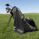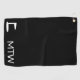 Dieses schwarze Golfhandtuch hat weißen Text. Sie können den Text so ändern, dass er das richtige Monogramm zeigt. Neben den Initialen befindet sich ein Bild der Golfflagge.