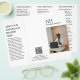 Moderner Dreifach-Broschüren-Flyer (wird entfaltet) mit einem einfachen und minimalen Schwarz-Weiß-Design mit Ihrem Monogramm in einem kühlen Schriftart zusammen mit Ihrem Firmennamen und Foto auf der Vorderseite. Die Innenseite hat Ihre Preisliste / Service-Menü und die Rückseite hat Ihre Kontaktinformationen und optionalen QR-Code. Sie können den QR-Code mit den dreifachen Markierungen im Entwurfsbearbeitungsprogramm entfernen.