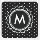 Einfache Schwarz-Weiß-Polka-Dot-Monogramm-Retro Quadratischer Aufkleber