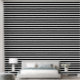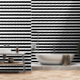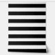 Die Tapete ist mit schwarz-weißen Streifen geschmückt.