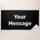 Auf diesem schwarzen Strandtuch können Sie Ihre eigene Nachricht in weißem Text erstellen.