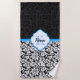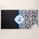 Modernes, einfaches, schwarz-weißes Damast-Muster und blauer Rahmen und Streifen. Optionales Monogramm