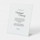 Dieses einfache, schwarz-weiße kalligraphische, nicht gestopfte Zeremonie-Podest-Schild verleiht einem eleganten Luxus, aber gleichzeitig modernes Gefühl für eine minimalistische und traditionellere oder formelle Hochzeit. Die lässige Kalligraphie ermöglicht ein antikes Ambiente, während das klassische neutrale Design mit jedem einzigartigen Aspekt Ihrer Ehefeier kombiniert werden kann.