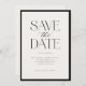 Einfaches Schwarz-weißes Kalligraphieskript verfügt Save the Date über einen fett gestreiften Rahmen, der moderne Schrift umgibt, die auch Kalligraphie-Skripte enthält.