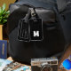 Elegante, anpassbare schwarze Gepäckmarke mit weißem Rahmen und feinem Monogramm.
