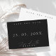 Erzählen Sie Ihre Liebe mit zeitloser Eleganz durch unsere Schwarz-weiße Minimal Typografie Wedding Save the Date Cards. Mit einem klassischen und eleganten Design vereint diese Karte das Wesen der Einfachheit und des schicken Minimalismus und vereint traditionellen Charme mit zeitgenössischem Stil. Die dunkle Ästhetik der Schwarz-Weiß-Palette verstärkt den dramatischen Reiz und schafft eine gotische Touch, die mit dem modernen Geschmack in Einklang steht. Nehmen Sie den Power der Typografie ein, während jeder Buchstabe zart erstellt wird, und verwandeln Sie Ihren Save the Date in ein Kunstwerk, das die Reinheit Ihrer Liebe und das Engagement eines Lebens widerspiegelt.