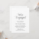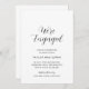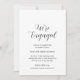 Zeitgenössische Einladungen mit Schwarzweiß mit einem einfachen und minimalistischen Layout mit "We're Verlobt" in einem eleganten Kalligraphieskript. Ein modernes Design, das gut zu jedem Stil der Verlobung passt.