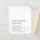Eine günstige BUDGET-Alternative für eine kleinere Größe von 4,5 x 5,6 Zoll, die ein Gewicht von 110 lbs hat, die ähnlich dick ist wie eine Postkarte (sie ist jedoch nicht als Postkarte geeignet). BITTE BEACHTEN SIE, ES GIBT EINE Einladung pro Blatt . Budget Einfache Schwarz-weiße Probe Dinner Der Header ist groß in stilvollen Kleinbuchstaben mit den Details unten. Viel Weiß an der Spitze für ein zeitgenössisches Ambiente! Personalisieren Sie den Text einfach auf Ihre eigenen Daten.