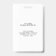 Benutzerdefiniertes ID Name Abzeichen in einem vertikalen Layout mit Ihrem Logo und QR-Code. Verwenden Sie die Vorlage, um jedem Mitarbeiter Namen und Titel hinzuzufügen. Die Rückseite hat Ihre Kontaktdaten und Anweisungen für die Rückgabe, falls gefunden. Dieses einfache, aber berufliche Design enthält alle Texte in schwarz über einen weißen Hintergrund und kann durch Anklicken des Buttons "Anpassen" auf eine beliebige Farbe geändert werden. Dieses Corporate Style ID Abzeichen kann für jede Art von Unternehmen personalisiert sein, groß oder klein.