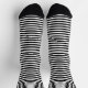Ein klassisches Muster aus dünnen, horizontalen Streifen ist auf diesen schwarz-weißen Socken.