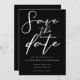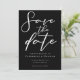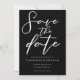 Einfach schick und stilvoll präsentiert sich unsere minimalistische Winterhochzeitskollektion mit eleganter, kursiver Typografie für Ihre moderne Veranstaltung. Schicken Sie Ihren Gästen eine Abend-Save the Date-Karte mit einem auffälligen weißen Drehbuch auf schwarzem Hintergrund.