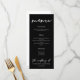 Einfach schick und stilvoll präsentiert sich unsere minimalistische Winterhochzeit-Kollektion mit hochklassiger, kursiver Typografie für Ihre moderne Veranstaltung. Beeindrucken Sie Ihre Gäste mit einer kühnen Hochzeitskarte mit weißem Schriftzeichen auf einem eleganten, schwarzen Menü.