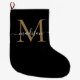 Simple Black Gold Monogram Elegante Girly Script Grosser Weihnachtsweihnachtsbaum Strumpf