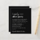 Einfache preisgünstige Black Hochzeit Ankündigung und Empfang Einladung. Die Vorderseite zeigt "Happily Ever After Party" in einer Mischung aus zeitgenössischem Weiß-Drehbuch und fett moderner weißer Typografie. Personalisieren Sie Ihre Nachricht und Einladung detaillierter und fügen Sie Ihre Namen in ein signaturähnliches Skript ein. Dieses halbglänzende Haushaltspapier ist gewichtsähnlich wie Foto. Eine traditionelle Version mit dicken Karten ist ebenfalls verfügbar (Nachricht für den Link).