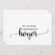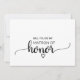 Diese Schwarz-Weiß-Kalligraphie-Trauzeugin ist perfekt für eine rustikale oder moderne Themenhochzeit. Das minimalistische Design besticht durch einen eleganten Schriftart mit Pinselskripten und ein reizendes Frauenherz. Der Rücken ist leer, sodass Sie genug Platz haben, um eine durchdachte personalisierte Notiz zu schreiben.